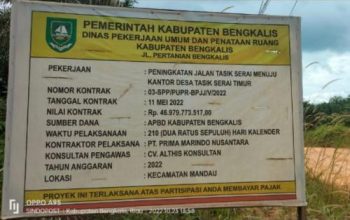 Diteruskan Emos, pada Pembangunan Jembatan Sei. Pengambang dengan nilai Kontrak Ro. 3.055.592.000,00 yang di kerjakan oleh PT. Qinthara Cemerlang Tahun anggaran 2019. Timbunan tidak serata dengan dinding penahan, pekerjaan oprit dengan beton diduga belum terlaksana sebanyak 108 M3. Dan juga kondisi jembatan saat ini sudah banyak yang retak dan berlobang, kami menduga ada indikasi kerugian negara sebesar Rp. 21.870.000,00 + Rp. 67.5000.000,00= Rp. 89.370.000,00′-“.Jelas Emos.