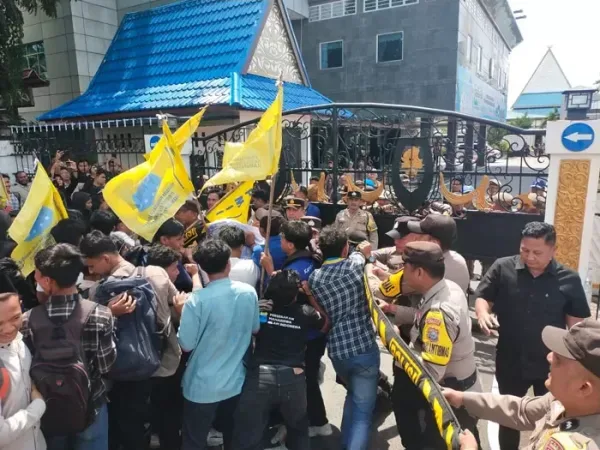 Sedangkan aksi demo mahasiswa yang digelar di depan pintu masuk Kantor Bupati Bengkalis Senin (22/9/2025) pagi, sempat terjadi adu fisik dengan petugas kepolisian dari Polres Bengkalis. Pasalnya puluhan mahasiswa yang menggelar aksi demo sejak pukul 09.30 sampai pukul 11.00 WIB tidak bisa menemui Bupati Bengkalis Kasmarni.