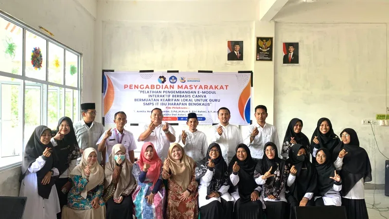 Bengkalis, Rakyat45.com – Sebagai wujud komitmen terhadap penguatan kapasitas pendidik di era digital, dosen Politeknik Negeri Bengkalis (Polbeng) menggelar program Pengabdian kepada Masyarakat bertajuk “Pelatihan Pengembangan E-Modul Interaktif Berbasis Canva Bermuatan Kearifan Lokal untuk Guru SMPS IT Ibu Harapan Bengkalis.”