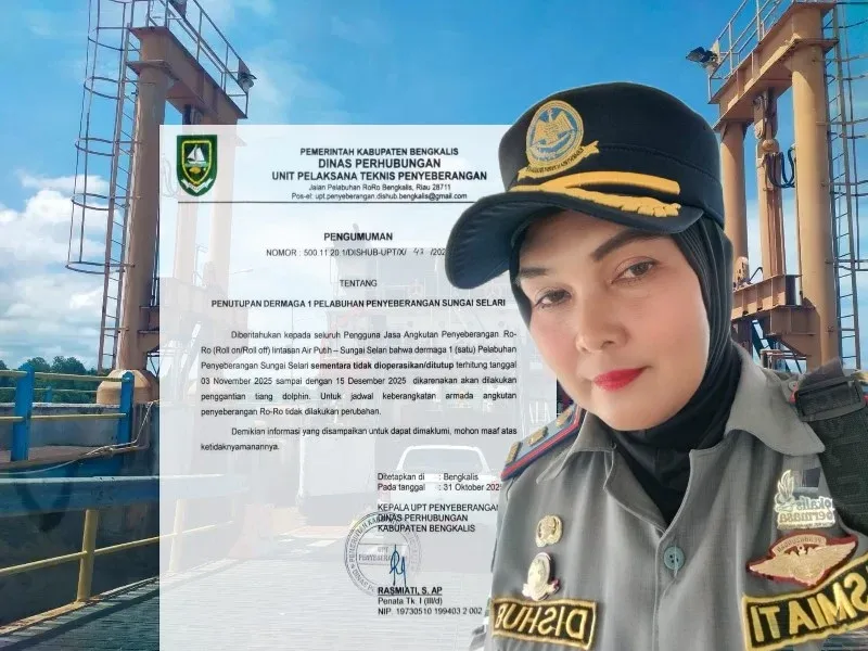 Bengkalis, Rakyat45.com – Dinas Perhubungan (Dishub) Kabupaten Bengkalis melalui UPT Penyeberangan resmi menutup sementara operasional Dermaga 1 Pelabuhan Penyeberangan Sungai Selari. Kebijakan ini berlaku mulai 3 November hingga 15 Desember 2025, menyusul dimulainya pekerjaan penggantian tiang dolphin di area dermaga.