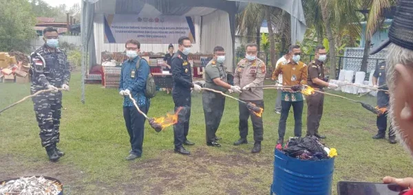 Kepala Kantor Bea Cukai Bengkalis, Eka Mustika Galih Sayudo, memimpin kegiatan pemusnahan yang disaksikan perwakilan pemerintah daerah, aparat kepolisian, TNI, dan pihak kejaksaan.