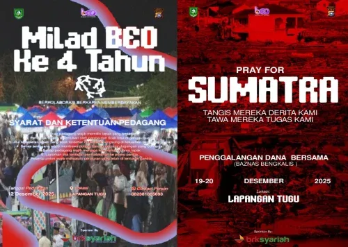 Dimensi kemanusiaan menjadi salah satu penekanan Milad tahun ini. Melalui aksi “Pray for Sumatra”, BEO bersama Baznas Bengkalis mengajak masyarakat untuk mengulurkan tangan bagi para korban bencana di Sumatra. Mengusung tema “Tangis mereka derita kami, tawa mereka tugas kami”, kegiatan ini menjadi ajakan untuk menyatukan empati dan berbagi kepedulian.