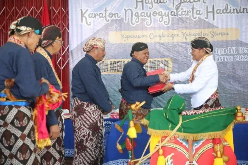 Sleman, Rakyat45.com – Nuansa khidmat menyelimuti Kantor Kapanewon Cangkringan saat Bupati Sleman, Harda Kiswaya, menerima ubarampe upacara adat Labuhan Merapi dari utusan Raja Keraton Ngayogyakarta Hadiningrat, Sri Sultan Hamengku Buwono X, Senin (19/1). Penyerahan ini menjadi penanda dimulainya rangkaian ritual sakral yang telah mengakar kuat dalam kehidupan masyarakat Yogyakarta.