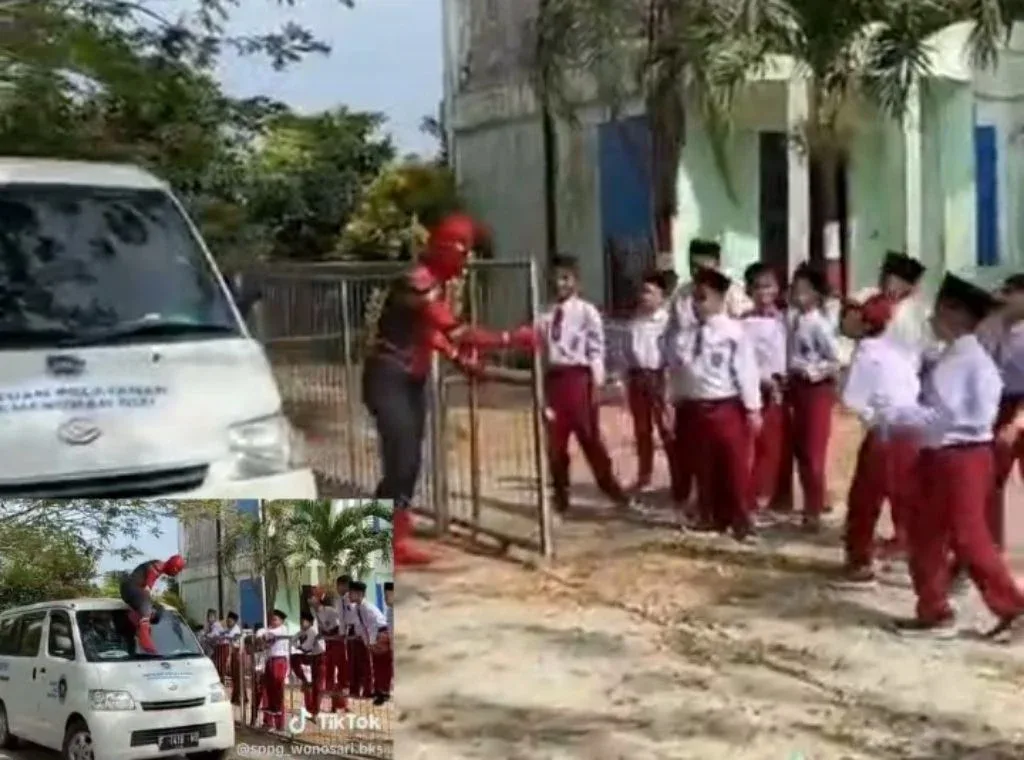 Momen ini terekam dalam unggahan akun TikTok @SPPG_Wonosari.BKS yang kini viral. Dalam video tersebut, terlihat mobil MBG berwarna putih memasuki halaman sekolah, disambut sorak sorai puluhan anak yang sudah menunggu di pagar. Sosok Spiderman bahkan tampak berdiri gagah di atas atap mobil, memancing teriakan histeris dan lambaian tangan para siswa yang tampak begitu antusias, seolah bertemu langsung dengan pahlawan super favorit mereka.