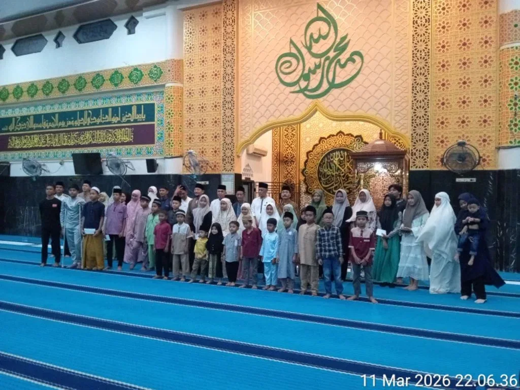 Rakyat45.com, Senggoro – Malam 22 Ramadhan 1447 H/2026 M menjadi momen penuh berkah di Desa Senggoro, Kecamatan Bengkalis, Kabupaten Bengkalis. Pengurus Masjid Al-Mubarak menyerahkan santunan kepada 46 Anak Yatim yang berasal dari 8 (Delapan), Rukun Tetangga (RT), seusai sholat Tarawih dan Witir, Rabu (11/3/2026) malam.