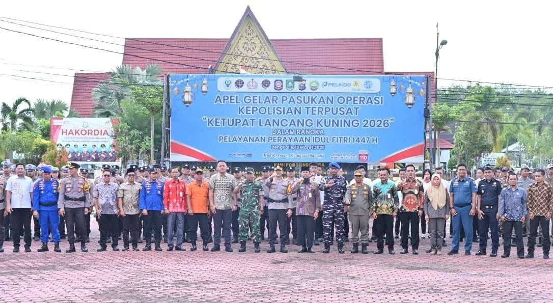 Rakyat45.com, Bengkalis – Kepolisian Resort Bengkalis menegaskan kesiapan pengamanan menjelang Hari Raya Idul Fitri 1447 Hijriah melalui Apel Gelar Pasukan Operasi Ketupat Lancang Kuning 2026 yang berlangsung di halaman Markas Komando Polres Bengkalis, Jalan Pertanian, Kecamatan Bengkalis, Kamis (12/3/2026) pagi.