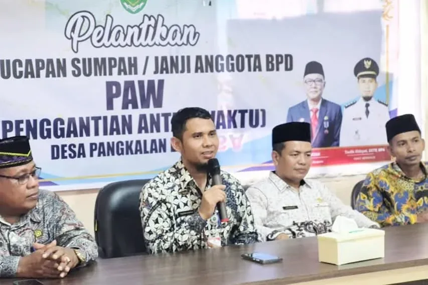 Rakyat45.com, Bengkalis –  Suasana khidmat mewarnai Aula Rapat Kantor Desa Pangkalan Batang, Kecamatan Bengkalis, Kamis (12/03/2026), saat berlangsung prosesi pengambilan sumpah Penjabat (Pj.) Kepala Desa Pangkalan Batang sekaligus Penjabat Anggota Badan Permusyawaratan Desa (BPD) Penggantian Antar Waktu (PAW).