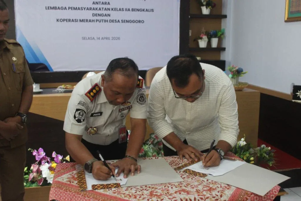 Langkah strategis itu diwujudkan melalui kerja sama antara Lembaga Pemasyarakatan Kelas IIA Bengkalis dan Koperasi Merah Putih (KMP) Desa Senggoro, yang secara resmi ditandai dengan penandatanganan Perjanjian Kerja Sama pada Selasa, 14 April 2026.