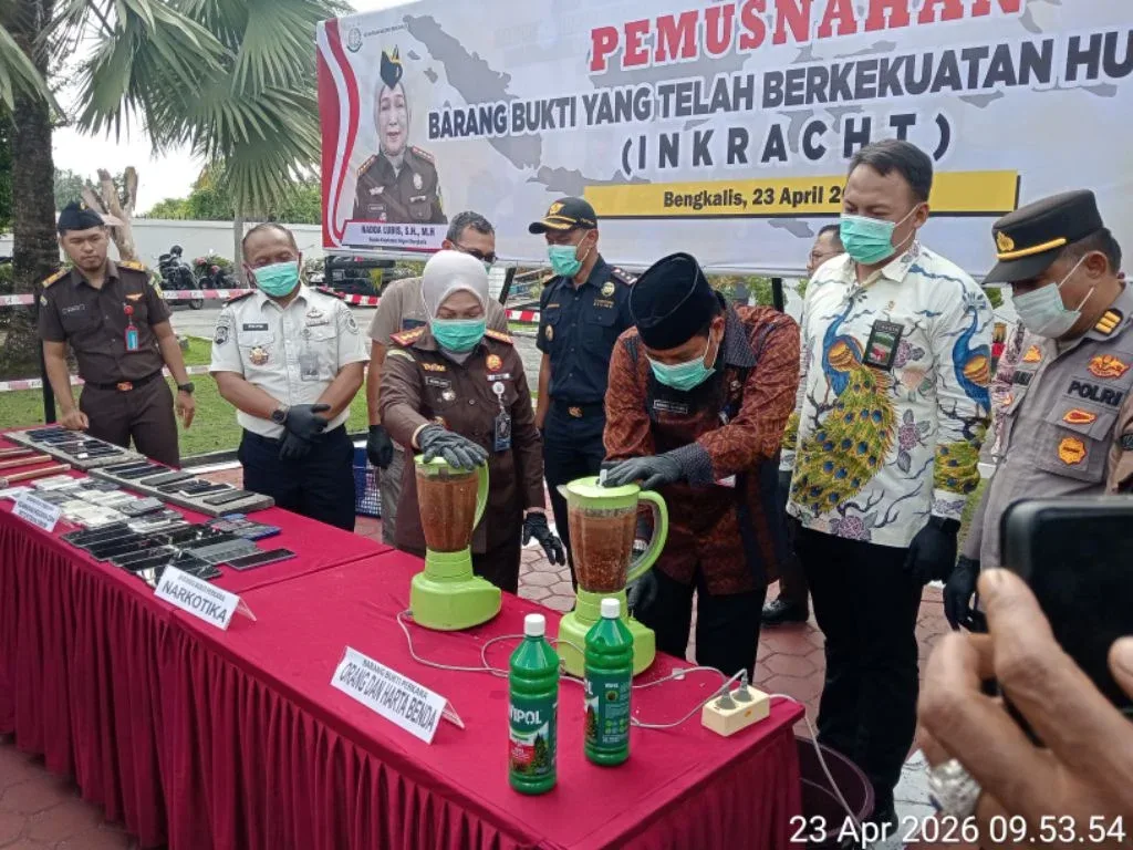 Rakyat45.com, Bengkalis – Komitmen penegakan hukum kembali ditegaskan Kejaksaan Negeri Bengkalis melalui pelaksanaan pemusnahan barang bukti perkara pidana yang telah berkekuatan hukum tetap (inkracht).