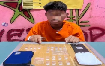 “Hasil tes urine menunjukkan A.N positif mengandung methamphetamine, memperkuat keterkaitannya dalam aktivitas peredaran narkotika. Atas perbuatannya, ia dijerat Pasal 114 ayat (2) Undang-Undang Nomor 35 Tahun 2009 tentang Narkotika, dengan ancaman hukuman berat,” jelasnya.